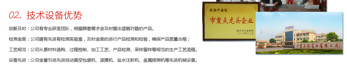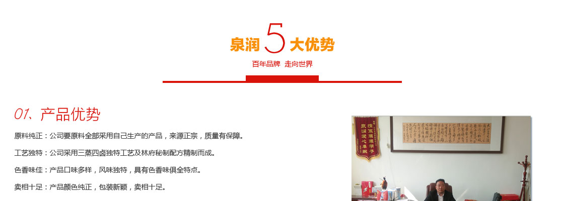 山東泉潤(rùn)食品有限公司,是一家集餐飲調(diào)理食品及袋裝休閑食品研發(fā)、生產(chǎn)、銷(xiāo)售為一體的食品企業(yè)。公司主導(dǎo)產(chǎn)品為"泉潤(rùn)牌"系列酒店調(diào)理食品及鴨類(lèi)休閑食品。 公司由老字號(hào)企業(yè)"臨沂市萬(wàn)香齋食品有限公司",為實(shí)現(xiàn)企業(yè)升級(jí)發(fā)展需要,投資成立的肉制品深加工企業(yè)。公司憑借研發(fā)及熟食加工平臺(tái),整合上下游產(chǎn)業(yè)鏈資源優(yōu)勢(shì),成功打造出禽類(lèi)肉食品深加工全產(chǎn)業(yè)鏈的發(fā)展模式,其產(chǎn)品秉承了老企業(yè)的傳統(tǒng)工藝和秘制配方并吸取最新醬鹵工藝而成。旗下"泉潤(rùn)"品牌逐漸成為鴨類(lèi)小包裝休閑食品領(lǐng)導(dǎo)品牌;"林府"品牌逐漸成為禽類(lèi)包裝肉食品行業(yè)全國(guó)知名品牌。產(chǎn)品遠(yuǎn)銷(xiāo)北京、上海、蘇州、杭州、重慶、武漢、廣州等全國(guó)大中城市,深受廣大消費(fèi)者喜愛(ài)。 公司位于臨沂市沂南縣食品加工產(chǎn)業(yè)園,成立于2013年,占地68畝,總投資8000余萬(wàn)元,建有現(xiàn)代化標(biāo)準(zhǔn)廠(chǎng)房及生產(chǎn)流水線(xiàn)1條,擁有職工餐廳、宿舍樓及辦公樓2棟;現(xiàn)有員工185人,其中各類(lèi)技術(shù)人員50余人。年銷(xiāo)售收入10000萬(wàn)元,利稅1100萬(wàn)元。